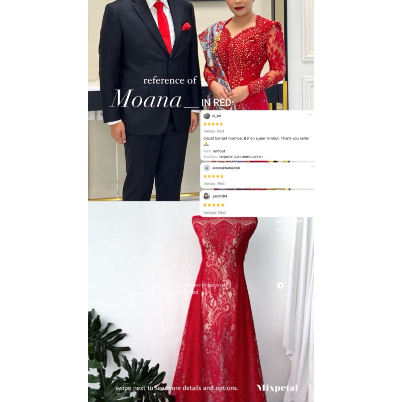 Semi perancis berbahan katun dove lembut , nyaman di pakai seharian. Moana dengan design nan manis dilengkapi dengan warna kekinian siap melengkapi tampilan di acara spesial anda. Moana juga sangat aman juga dipayet full untuk acara special anda