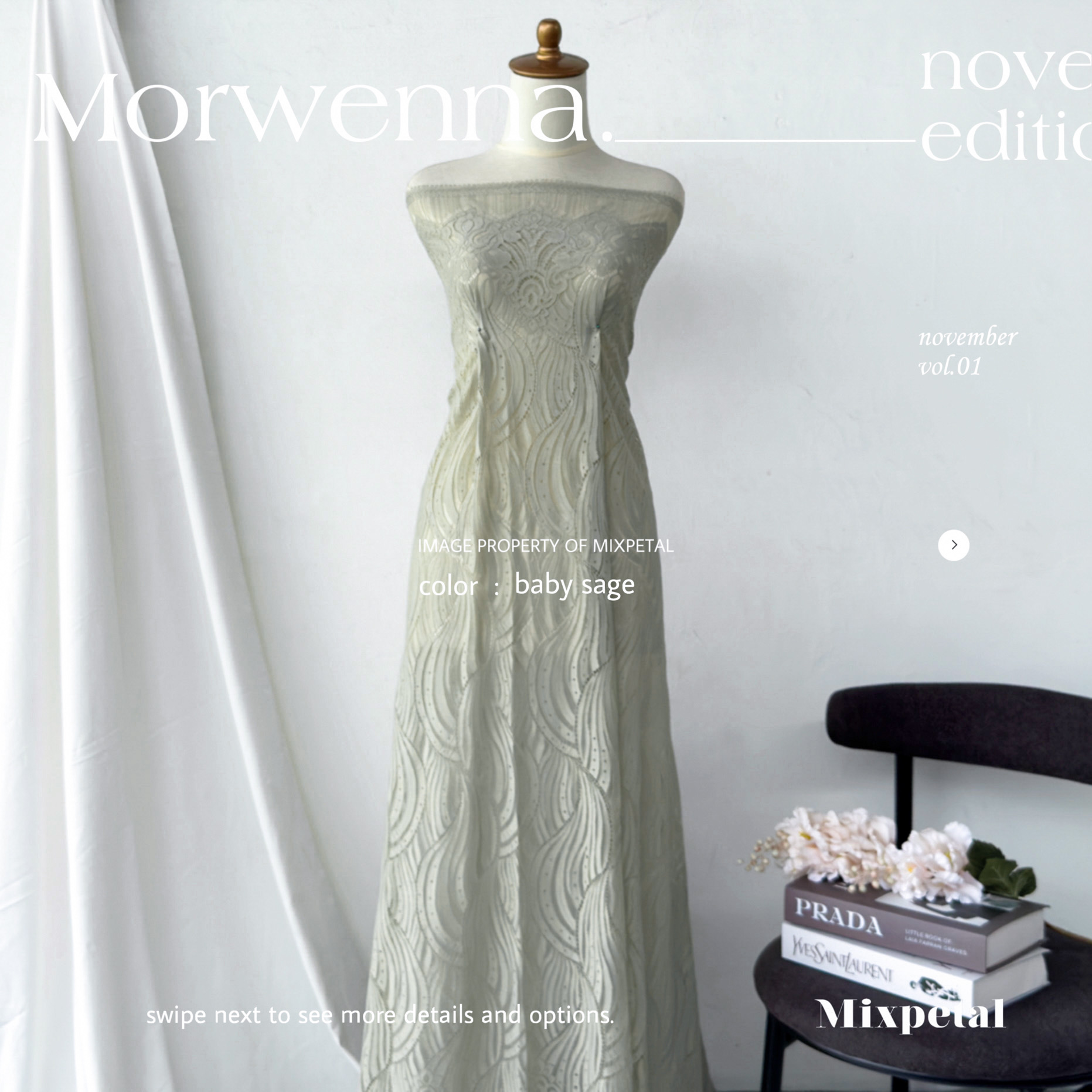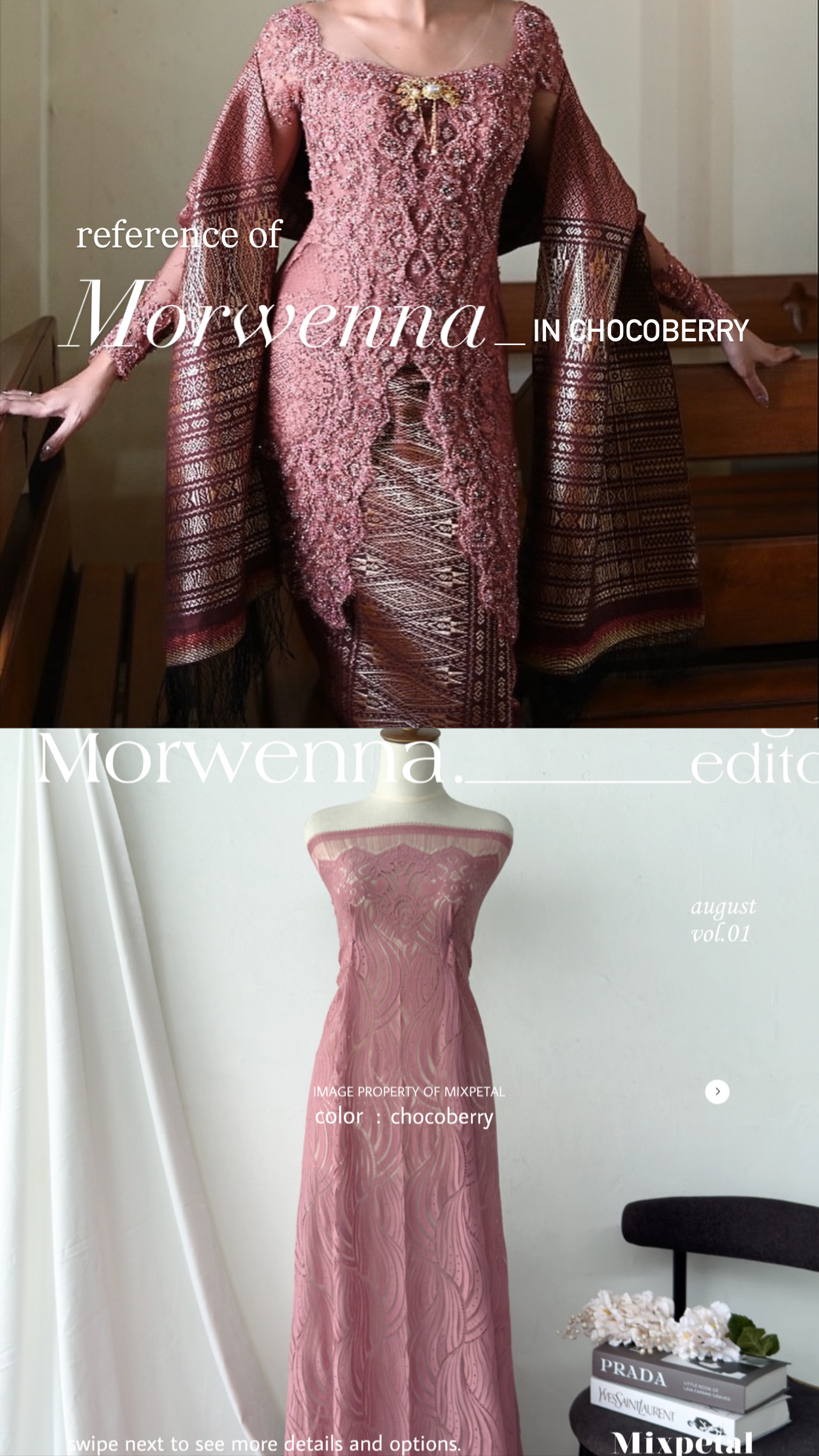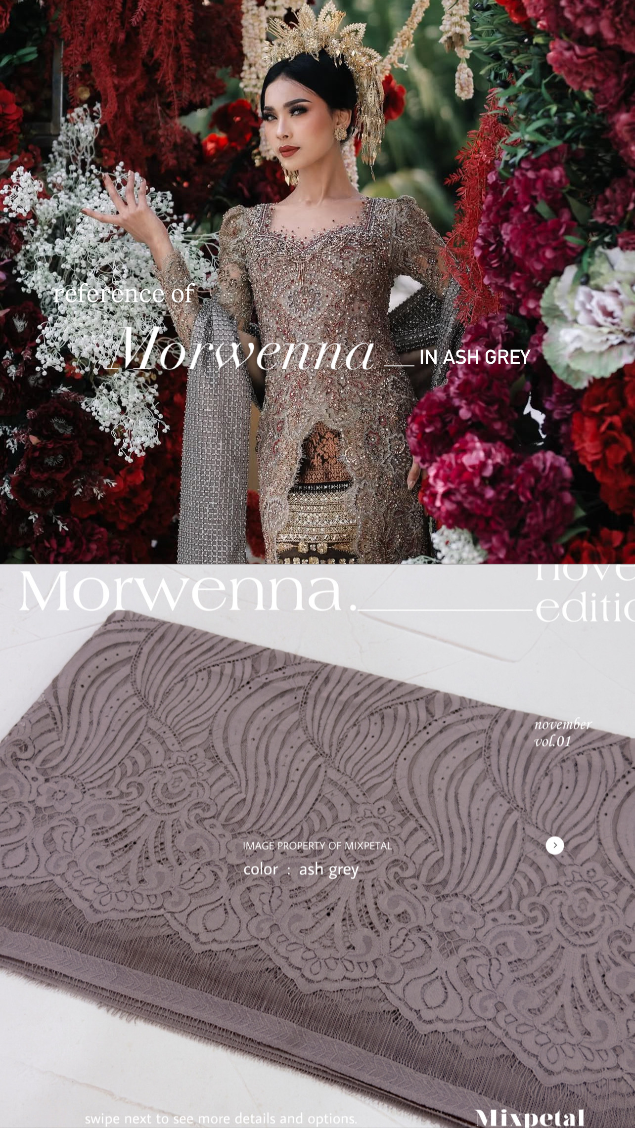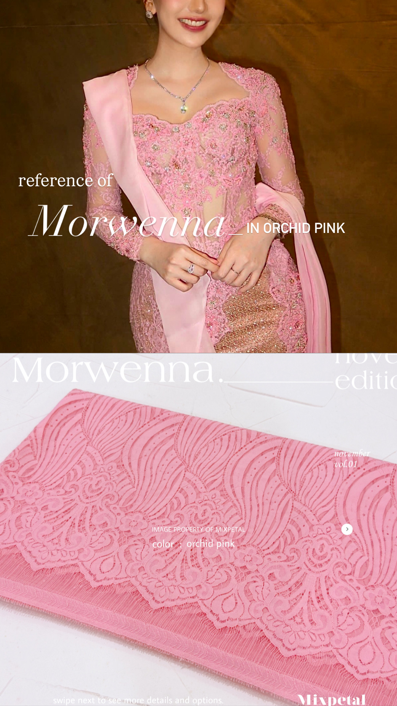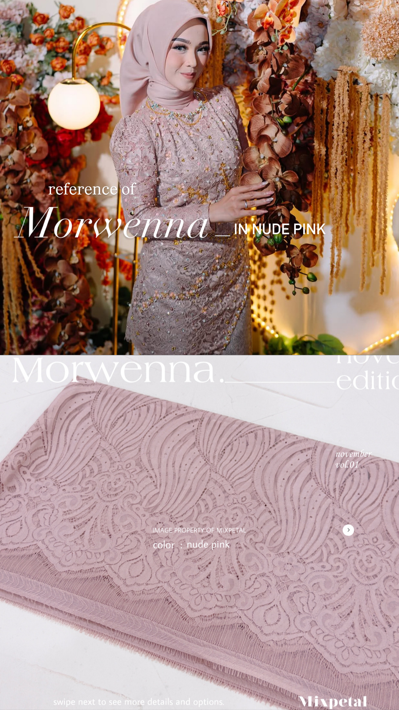 Terinspirasi dari gelombang laut yang Indah nan menawan dalam nuansa laut dan langit yang Indah, Design Morwenna kini hadir dalam detail yang elegan. Morwenna, dengan bahan dasar katun dove yang nyaman dipakai seharian dalam acra spesial anda. Bahan dasar semi italy yang kokoh untuk di padu dengan payetan spesialmu.