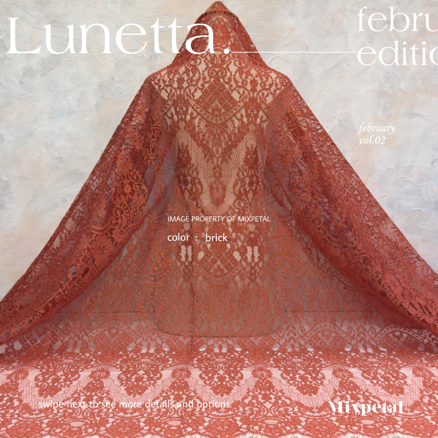 Perpaduan menawan dalam bahan kebaya dengan benang Metalic yang padat dan elegant. Bahan Kebaya dengan kualitas premium yang tidak berbulu dan aman untuk dipayet full. Benang padat Shimmernya juga tidak akan lepas ke badan walaupun dicuci ya babes. Lunetta dengan design yang kekinian tersedia dalam varian warna.